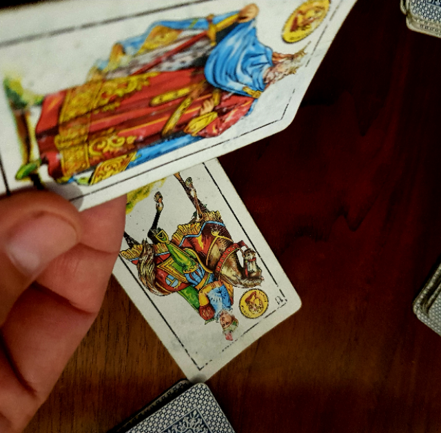 Pertenzo a unha familia afeccionada aos xogos de cartas: brisca, tute, subastado, escoba, burro, solitario, etc. A avoa paterna pracíalle botar unha partida ás cartas a calquera hora. Baralla en man esbozaba un sorriso pícaro de gran xogadora de naipes. Timbas entre familia e amigos nas que matar o tres desencadeaba unha algarabía propia desas manifestacións na rúa acompasadas a ritmo de testos e cazolas. Lembro longas e competidas partidas ao tute con sabor a vitoria, e tamén recoñezo que algunha vez “fun a Noia”. As cartas son caprichosas. Unhas veces, comeza o xogo e non apañas máis cas feas, disque: “pintan bastos”. Outras, levantas trunfos e cantas as corenta e vinte, e dis: “hai que limpar cando vai aire”. Invernos temperados barallando e arrimándolle leña á cociña. Que recordos! Que ben o temos pasado!