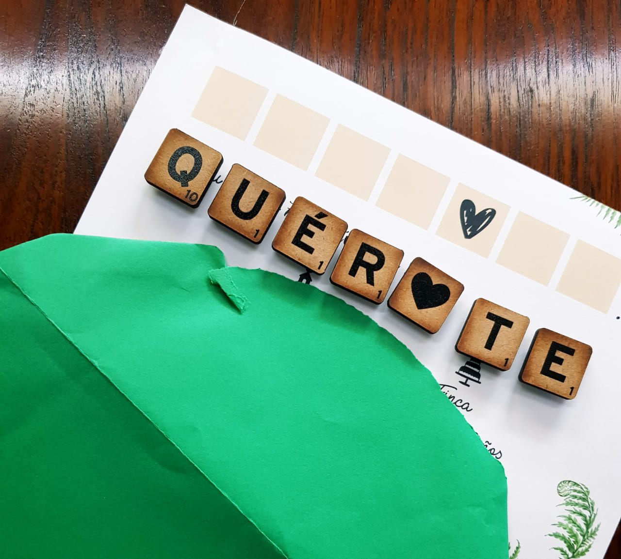 Pasaron un día a saudar e deixaron un sobre verde de dimensións considerables, que non era sospeitoso de agochar publicidade. O contido de tan rechamante sobre tornábase misterioso pois, ao palpalo, distinguía uns obxectos ben definidos e ríxidos. Tratábase, xa vos decatariades, da invitación á voda. Do interior daquela cárcere de papel liberei un “QUÉROTE” formado con fichas de madeira imantadas.